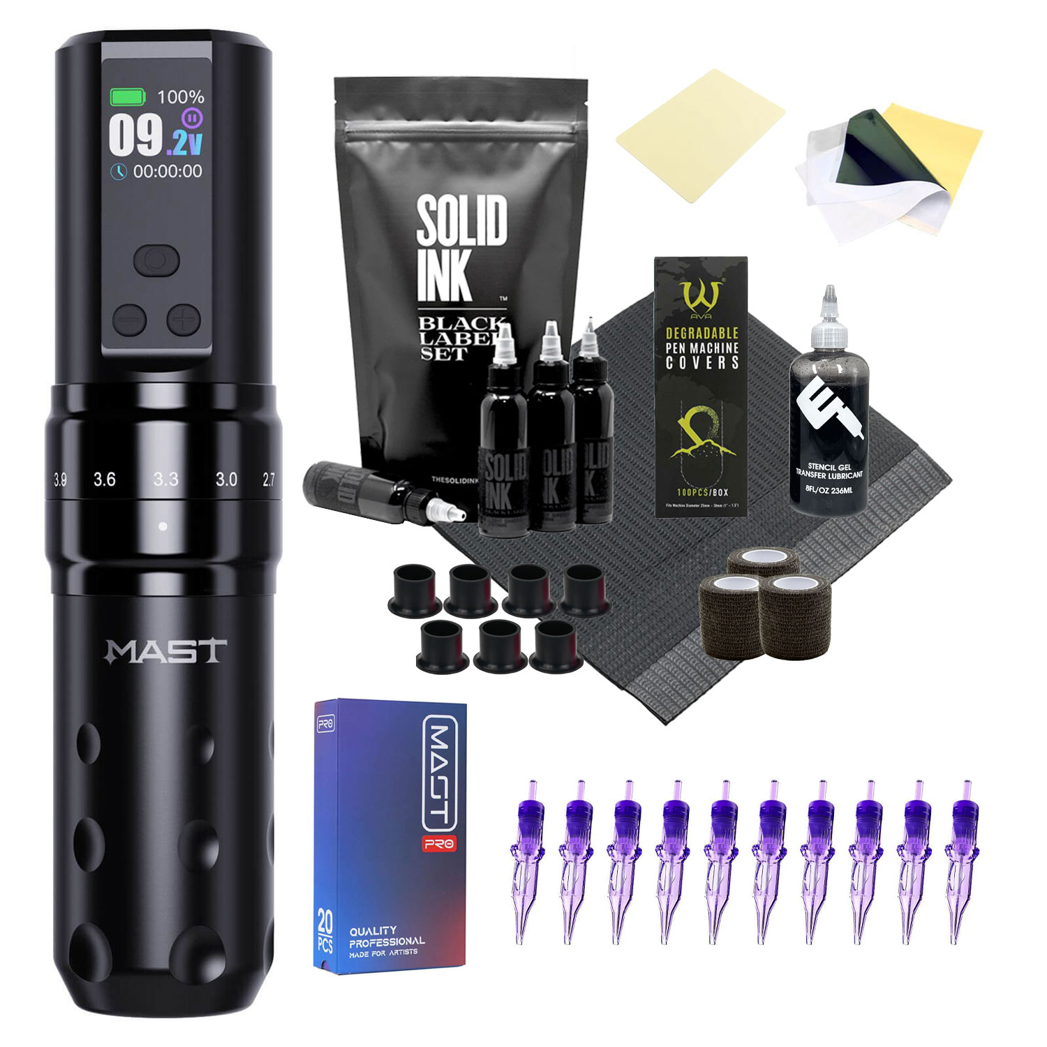 New Complete Tattoo Kit Tattoo Pen Rotary Tattoo Machine Tattoo Set Tattoo Needles Ink Wireless Battery Bandage Wish